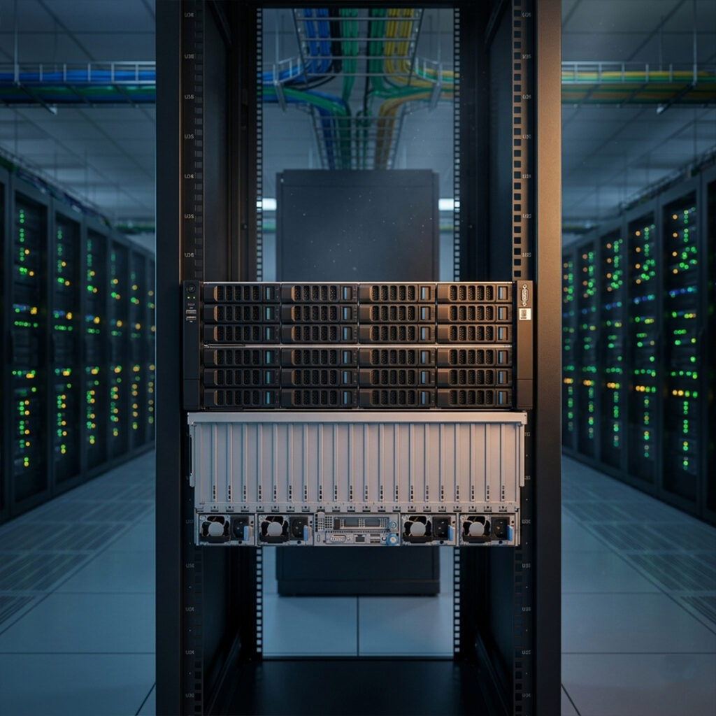 Mendukung konfigurasi GPU direct-connected maupun switch-connected, server ini memberikan fleksibilitas optimal antara performa dan ekspansi. Dengan hingga 32 DDR5 DIMM, 16 slot PCIe, serta kapasitas storage besar, sistem ini siap memenuhi kebutuhan data center modern dengan keandalan tinggi.
