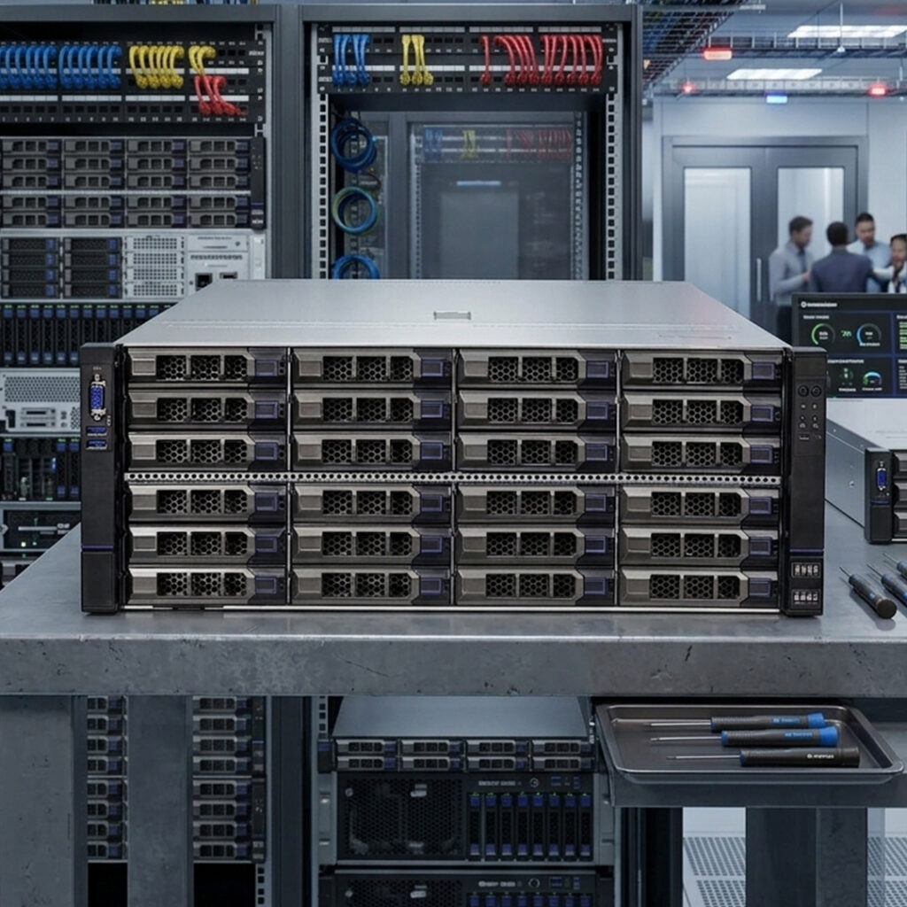 Server ini didukung hingga 2× Intel® Xeon® Scalable Gen 4 & 5 (Eagle Stream) dengan performa lebih cepat dan efisien. Dilengkapi hingga 32 DDR5 DIMM dan PCIe 5.0, sistem ini siap menangani workload modern seperti AI, analytics, dan virtualisasi dengan dukungan ekspansi GPU yang fleksibel.